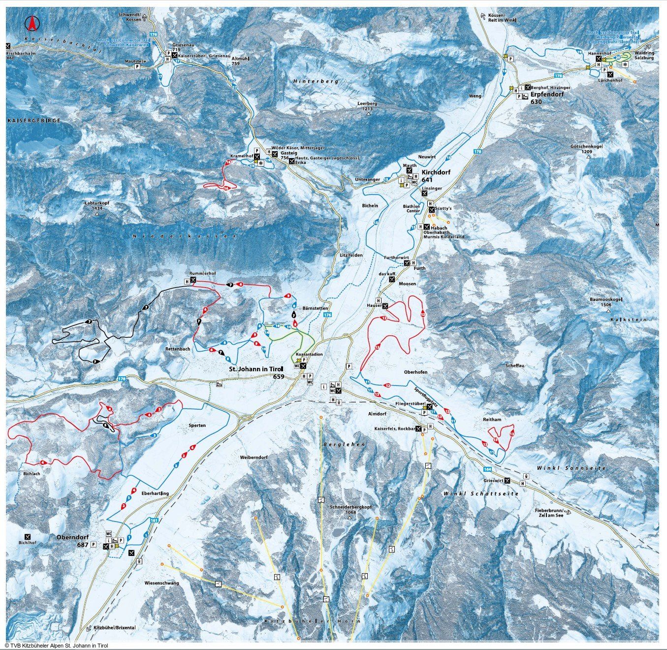 Die Hinterkaiserloipe ist mit 13 km ausschließlich gut konditionierten Langläufern zu empfehlen. Anfänger und gemütliche Läufer ziehen ihre Spuren auf der Reithamloipe auf der Talebene rund um den Sportflugplatz. Eine Höhenloipe befindet sich in Kirchdorf: die 3,13 km lange Höhenloipe Gasteig. Zudem können die 1,5 km lange Lärchenhofloipe in Erpfendorf und die 1 km lange Kramerhofloipe in Gasteig/Kirchdorf beschneit werden. Es gibt auch zwei beleuchtete Loipen.